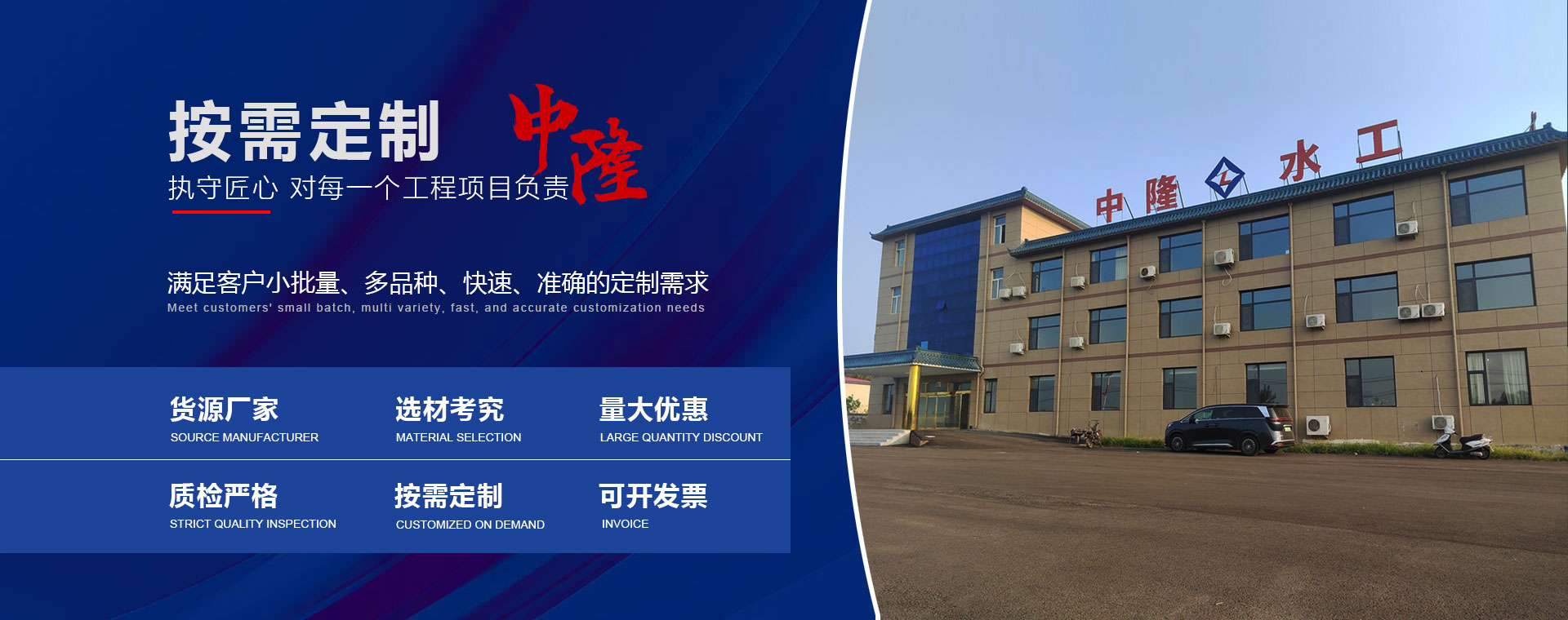 邢臺市中隆水工設(shè)備有限公司位于新河縣九龍工業(yè)園區(qū)占地面積20000平方米。北鄰北環(huán)路、西鄰西環(huán)路,交通便利。 公司堅持,依法經(jīng)營,誠信服務(wù)的宗旨,尋求合作共創(chuàng)輝煌。融科研制造銷售安裝,服務(wù)為一體的水工設(shè)備專業(yè)制造公司。優(yōu)質(zhì)制造設(shè)備,規(guī)格齊全,產(chǎn)品檢測體系完整,各項技術(shù)指標(biāo)均達到行業(yè)標(biāo)準(zhǔn),給客戶提供無憂合作! 主要產(chǎn)品有: &n···